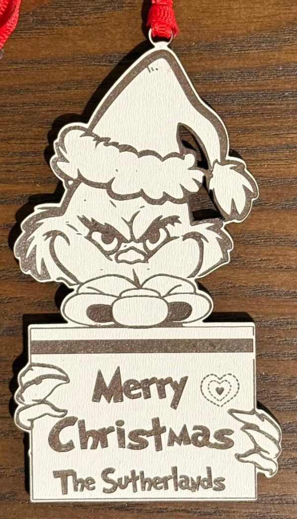 This handcrafted laser engraved GRINCH ornament will come personalized with your family name. Perfect ornament for Grinch lovers! Check out the gallery picture to see samples of our single layer ornaments.