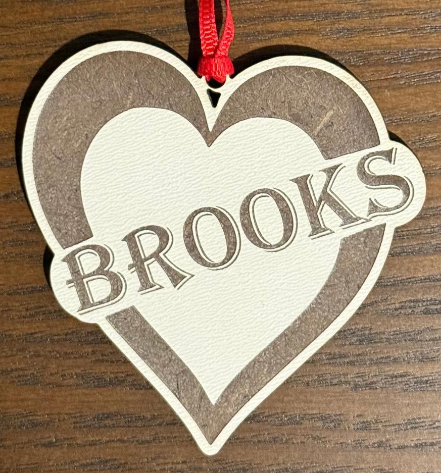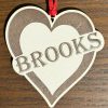 Personalize this heart ornament with the name or short text of your choice. Check out the gallery picture to see samples of our single layer ornaments.
